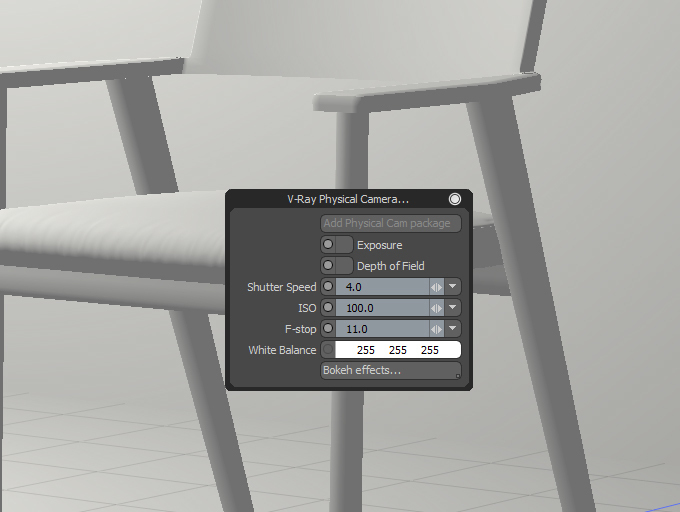 - Access to the most used V-Ray Physical Properties : DOF, Exposure, White Balance